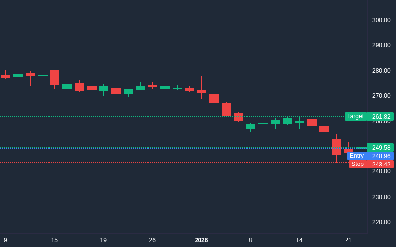 Entry: $248.96Target: $261.82Final: $253.13Stop: $243.42