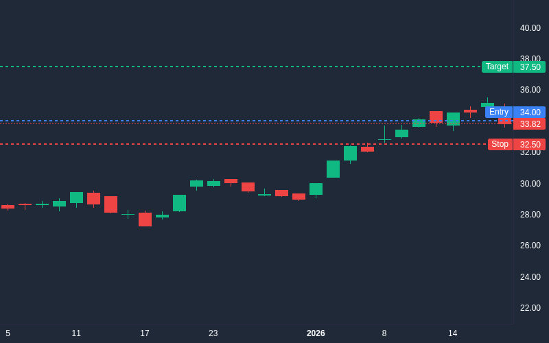Given the current technical setup, the positive fundamental backdrop, and the relatively balanced news sentiment, I believe ARKX presents a favorable risk-reward opportunity for a long position. My target price of $37.50 represents a potential upside of around 10% from the current price, with a stop loss at $32.50 for a risk-reward ratio of approximately 1.7:1. I have a 75% confidence in this trade setup based on the confluence of technical, fundamental, and sentiment factors."