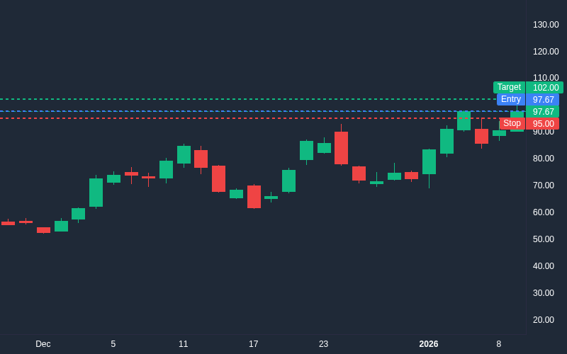 Entry: $97.67Target: $102.00Final: $97.67Stop: $95.00
