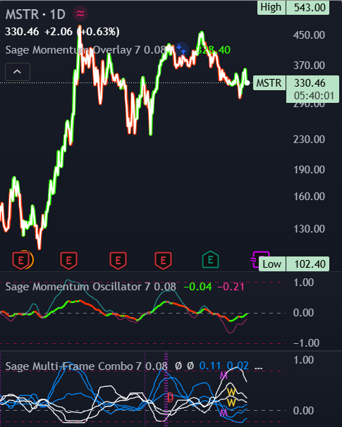 "As of September 29, 2025, MSTR is trading at $322.62, reflecting a strong upward momentum with a recent price surge of approximately 4.39%. This positive price action indicates robust buying interest, suggesting that investors are increasingly optimistic about the stock's potential. Over the past week, MSTR has consistently closed higher, breaking through key resistance levels, which reinforces a bullish sentiment among traders. While there are no specific recent catalysts driving this momentum, the overall market environment has been favorable for tech stocks, particularly those involved in cryptocurrency and digital assets. The increasing institutional interest in Bitcoin and related technologies has likely contributed to MSTR's price appreciation, as the company holds a significant amount of Bitcoin on its balance sheet. This correlation with the broader crypto market enhances MSTR's appeal as a leveraged play on Bitcoin's performance. However, there are contrarian risks to consider. A sudden downturn in Bitcoin prices could negatively impact MSTR, as the company's valuation is heavily tied to its crypto holdings. Additionally, regulatory scrutiny surrounding cryptocurrencies could pose challenges, potentially leading to volatility in MSTR's stock price. Despite these risks, the current technical indicators suggest a strong bullish trend, with the stock poised to reach a target of $360. The risk/reward ratio of 1:1.7, with a stop loss set at $300, provides a favorable entry point for long positions. Given the high confidence in the current momentum and the absence of negative catalysts, MSTR presents a compelling long opportunity. The combination of strong price action, favorable market conditions, and a strategic risk management approach supports a bullish outlook for MSTR in the near term."