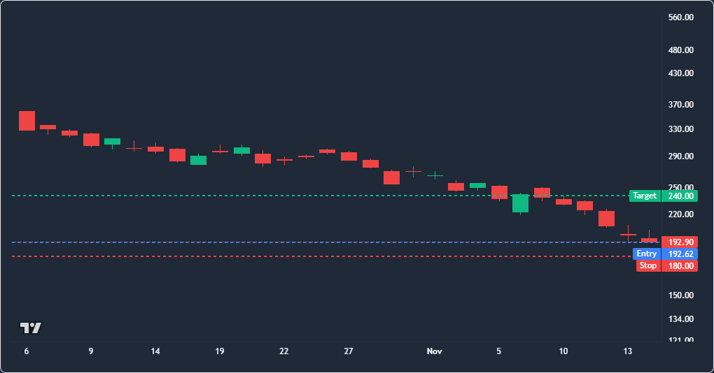 Entry: $193.72Target: $240.00Final: $177.13Stop: $180.00